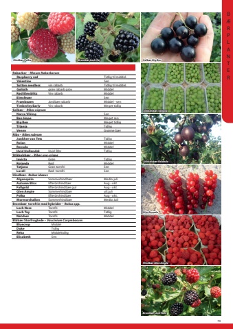 73Ribs RovadaSortsnavnDansk NavnS%u00e6sonRabarber %u2013 Rheum RabarbarumRaspberry redTidlig til middel.ValentineSenSutton seedlessvin rabarbTidlig til middel.Goliathgr%u00f8n rabarb grovMiddelR%u00f8d ElmsblitzVin rabarbMiddelElmsfeuerSenFrambozenJordb%u00e6r rabarbMiddel - senTimberley EarlyVin rabarbMeget tidligSolb%u00e6r %u2013 Ribes nigrumNarve VikingSenBen HopeMeget senBig BenMeget tidligTitaniaTidligVennyGr%u00f8nne b%u00e6rRibs %u2013 Ribes rubrumJunkher van TetsTidligRolanMiddelRovadaMiddelHvid HollandskHvid RibsTidligStikkelsb%u00e6r %u2013 Ribes uva-crispaInvictaGr%u00f8nTidligRolandaR%u00f8dMiddelTatjanaGr%u00f8n tornfriSenLarellR%u00f8d -tornfriSenHindb%u00e6r%u2013 Rubus idaeusAlgonquiinSommerhindb%u00e6rMedio juliAutumn BlissEfter%u00e5rshindb%u00e6rAug - okt.FallgoldEfter%u00e5rshindb%u00e6r gulAug - okt.Glen AmpleSommerhindb%u00e6rult.juliPolkaEfter%u00e5rshindb%u00e6rAug - okt.MormorshallonSommerhindb%u00e6rMedio JuliBromb%u00e6r tornfrie med hybrider %u2013 Rubus spp.Loch NessTornfriMiddelLoch TayTornfriTidligNatchezTornfriMiddelBl%u00e5b%u00e6r Storfrugtede %u2013 Vaccinium CorymbosumBluecropMiddelDukeTidligRekaMiddeltidligElisabethSenSolb%u00e6r Big BenHindb%u00e6r Glen AmpleBromb%u00e6r Loch NessHindb%u00e6r PolkaStikkelsb%u00e6r TatjanaStikkelsb%u00e6r RolandaBromb%u00e6r Loch TayRibs RovadaSolb%u00e6r Big BenHindb%u00e6r Glen AmpleBromb%u00e6r Loch NessHindb%u00e6r PolkaStikkelsb%u00e6r TatjanaStikkelsb%u00e6r RolandaBromb%u00e6r Loch Tay