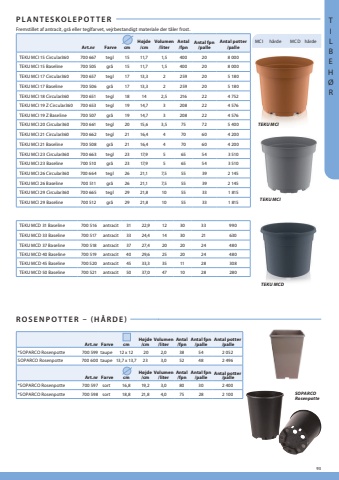 93PLANTESKOLEPOTTERArt.nrFarvecmH%u00f8jde/cmVolumen/literAntal/fpnAntal fpn/palleAntal potter/palleTEKU MCI 15 Circular360700 667tegl1511,71,5400208 000TEKU MCI 15 Baseline700 505gr%u00e51511,71,5400208 000TEKU MCI 17 Circular360700 657tegl1713,3225920TEKU MCI 17 Baseline700 506gr%u00e5 1713,3225920TEKU MCI 18 Circular360700 651tegl18142,5216224 752TEKU MCI 19 Z Circular360700 653tegl1914,73208224 576TEKU MCI 19 Z Baseline700 507gr%u00e51914,73208224 576TEKU MCI 20 Circular360700 661tegl2015,63,575725 400TEKU MCI 21 Circular360700 662tegl2116,4470604 200TEKU MCI 21 Baseline700 508gr%u00e52116,4470604 200TEKU MCI 23 Circular360700 663tegl2317,956554TEKU MCI 23 Baseline700 510gr%u00e52317,9TEKU MCI 26 Circular360700 664tegl267,5TEKU MCI 26 Baseline700 511gr%u00e5267,5TEKU MCI 29 Circular360700 665tegl2921,810TEKU MCI 29 Baseline700 512gr%u00e52910ROSENPOTTER %u2013(H%u00c5RDE)Fremstillet af antracit, gr%u00e5 eller teglfarvet, vejrbestandigt materiale der t%u00e5ler frost.TEKU MCIMCIh%u00e5rdeMCDh%u00e5rdeArt.nrFarvecmH%u00f8jde/cmVolumen/literAntalAntal fpnAntal potter /palle*SOPARCO Rosenpotte700 599taupe12 x 12 202,0382 052SOPARCO Rosenpotte700 600taupe13,7 x 13,7233,052482 496Art.nrFarvecmH%u00f8jde/cmVolumen/literAntal/fpnAntal fpn/palleAntal potter /palle*SOPARCO Rosenpotte700 597sort16,819,23,080302 400*SOPARCO Rosenpotte700 598sort18,821,84,075282 100SOPARCORosenpotteTEKU MCITEKU MCDTEKU MCD 31 Baseline 700 516antracit3122,912TEKU MCD 33 Baseline700 517antracit3324,414TEKU MCD 37 Baseline700 518antracit3727,420TEKU MCD 45 Baseline700 520antracit4533,335TEKU MCD 50 Baseline700 521antracit5037,047